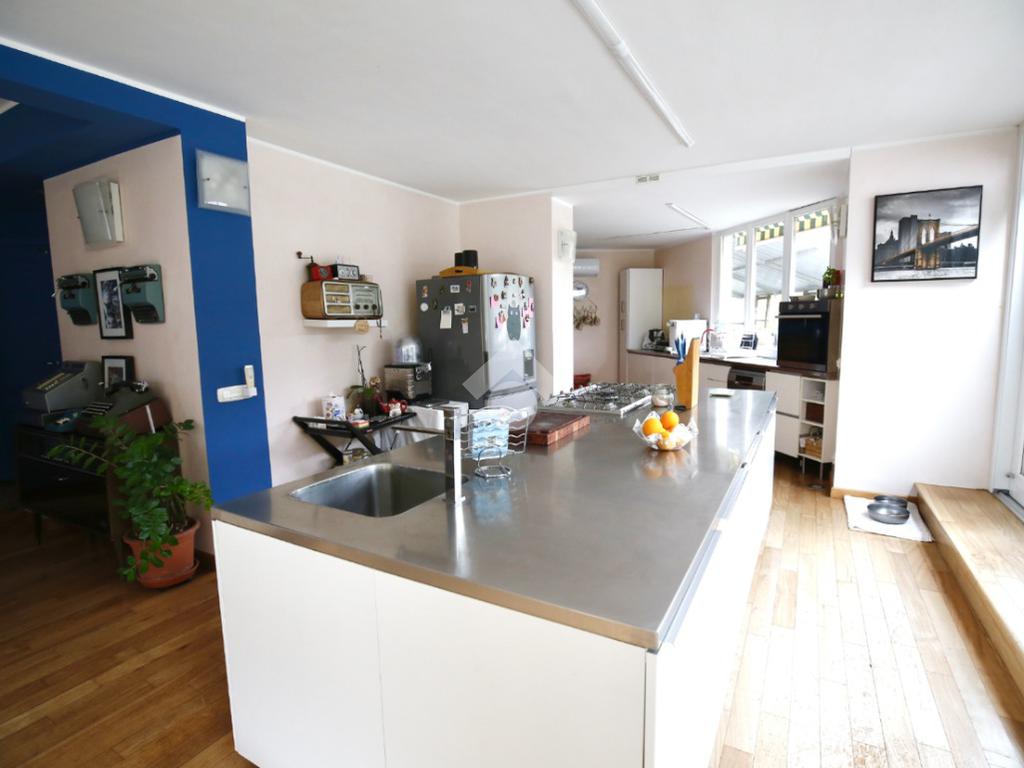 Al piano terra, l'ampia zona giorno accoglie cucina, sala da pranzo e soggiorno in un unico ambiente con ampie vetrate che rendono l'ambiente molto luminoso e con piacevole vista sul giardino, accompagnato da un maestoso bagno. Completano il piano terra, i pratici spazi di servizio che includono una cantina, un locale centrale termica e un locale lavanderia/stireria.