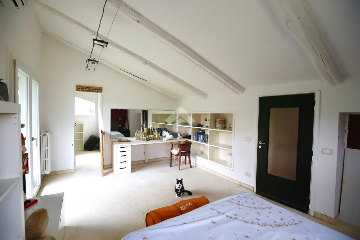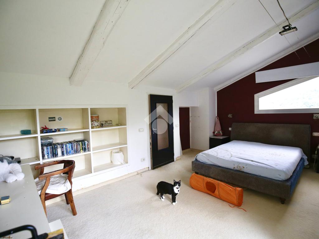 Il piano superiore ospita una camera con antibagno e bagno, dotata di balcone. Un sottotetto non abitabile aggiunge ulteriore spazio.