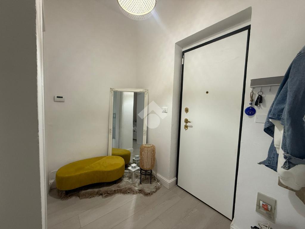 E' presente un'ampio ingresso, un luminoso soggiorno con cucina a vista, dal quale si accede direttamente a un balcone, ideale per godere di un momento di relax all’aria aperta. La zona notte è composta da una spaziosa camera da letto matrimoniale con uscita su un secondo balcone e da un bagno finestrato, anch’esso ristrutturato con finiture moderne.