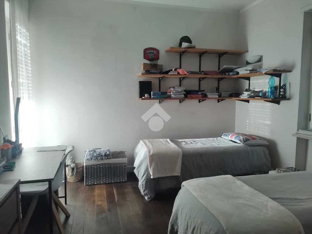 La zona notte è composta da due camere ben distribuite. Il bagno, anch’esso rinnovato, è funzionale e rifinito con gusto.