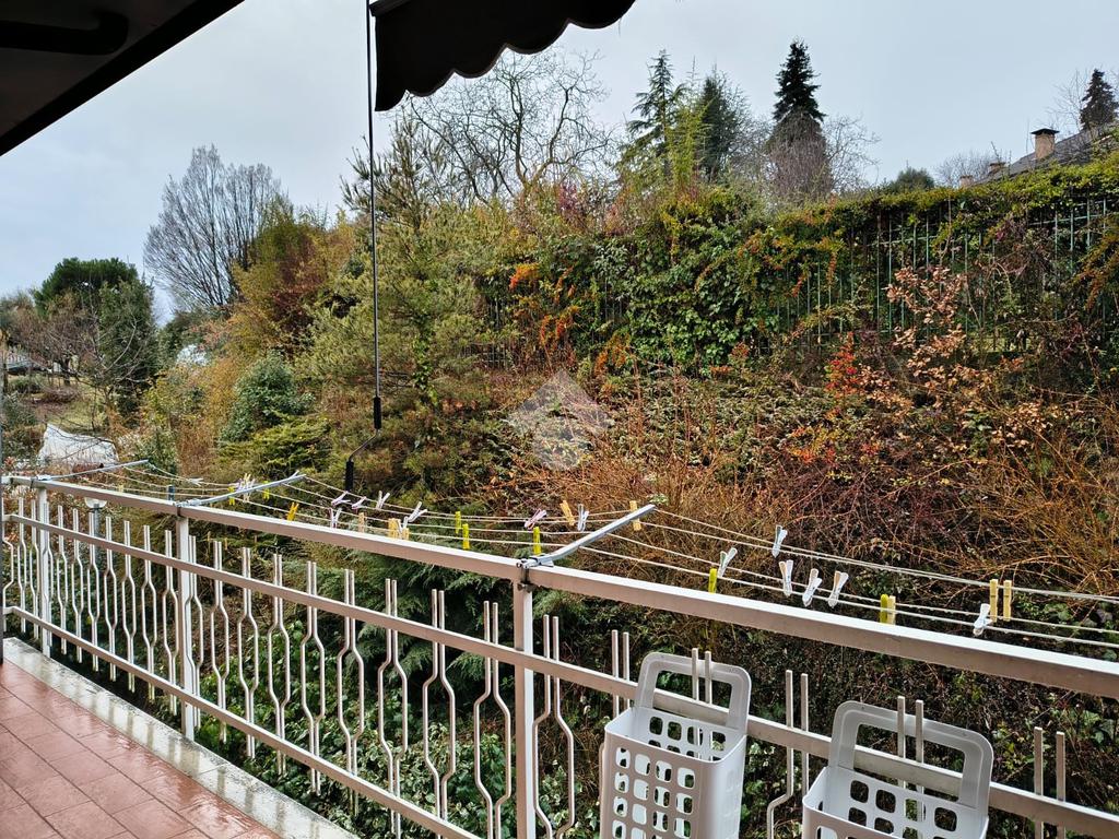 Due terrazzi panoramici ampliano gli spazi verso l’esterno, mentre cantina, due posti auto in garage e un curato giardino condominiale completano una proprietà di alto profilo.