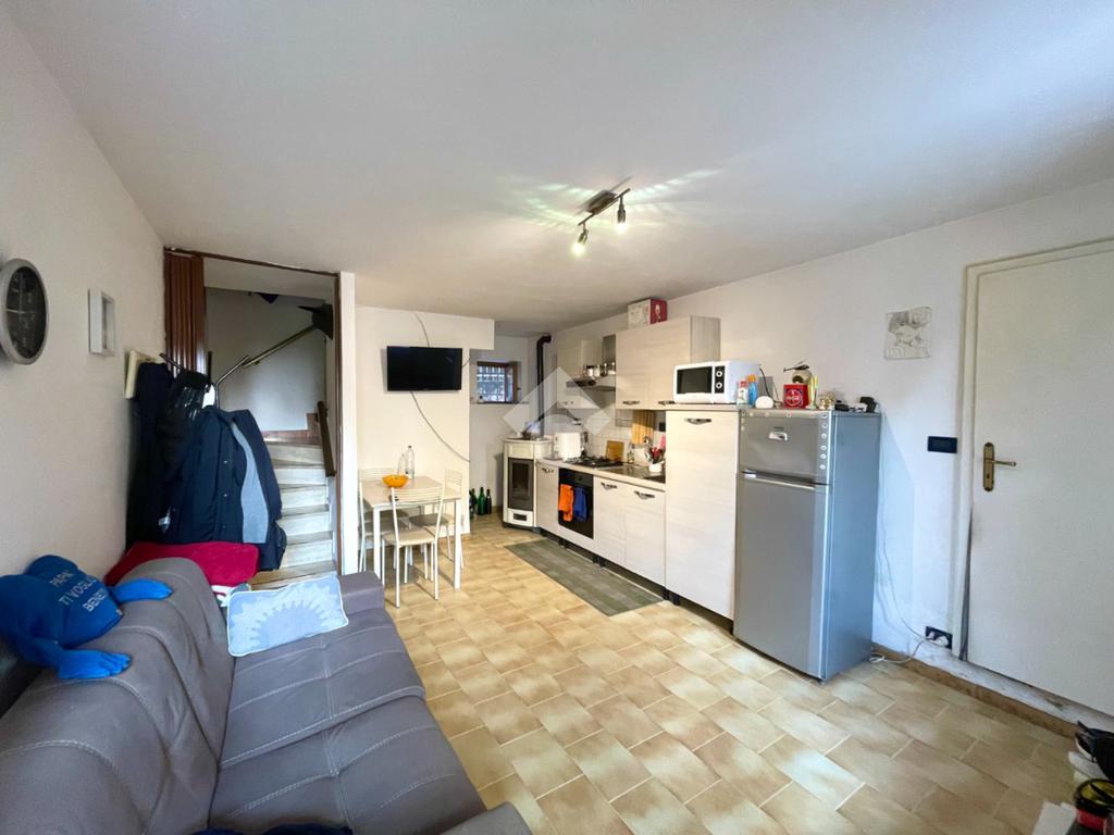 Al piano terra troviamo un soggiorno con angolo cottura e pratico ripostiglio sottoscala.