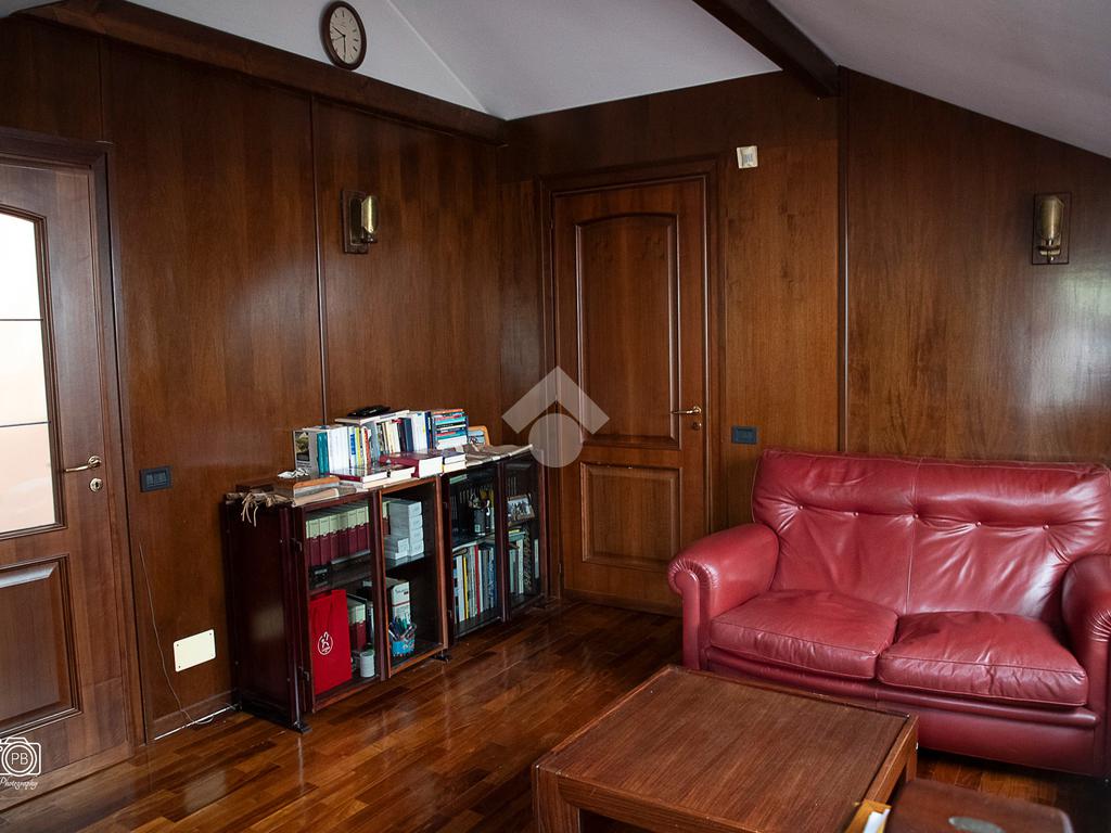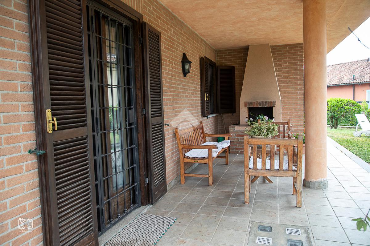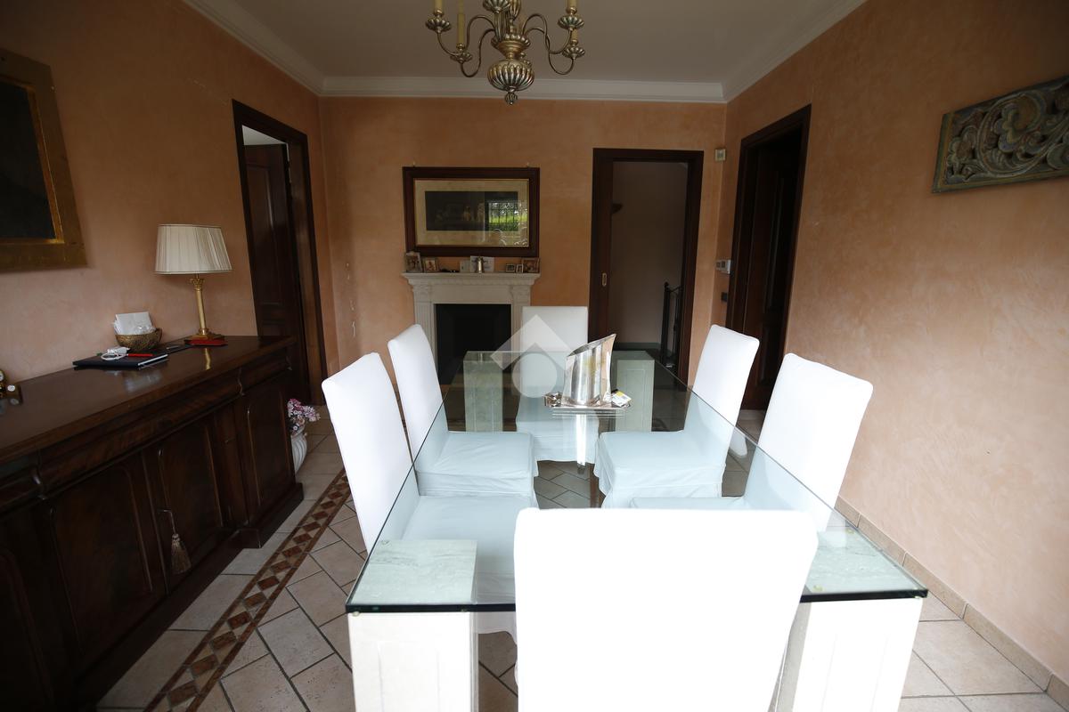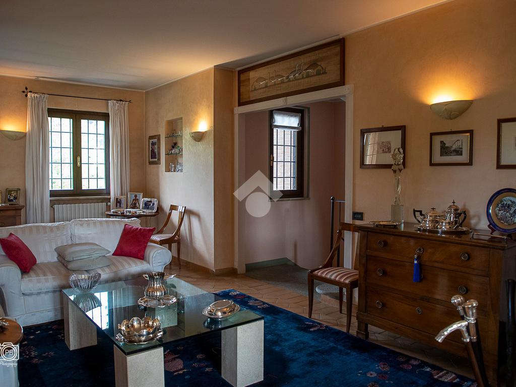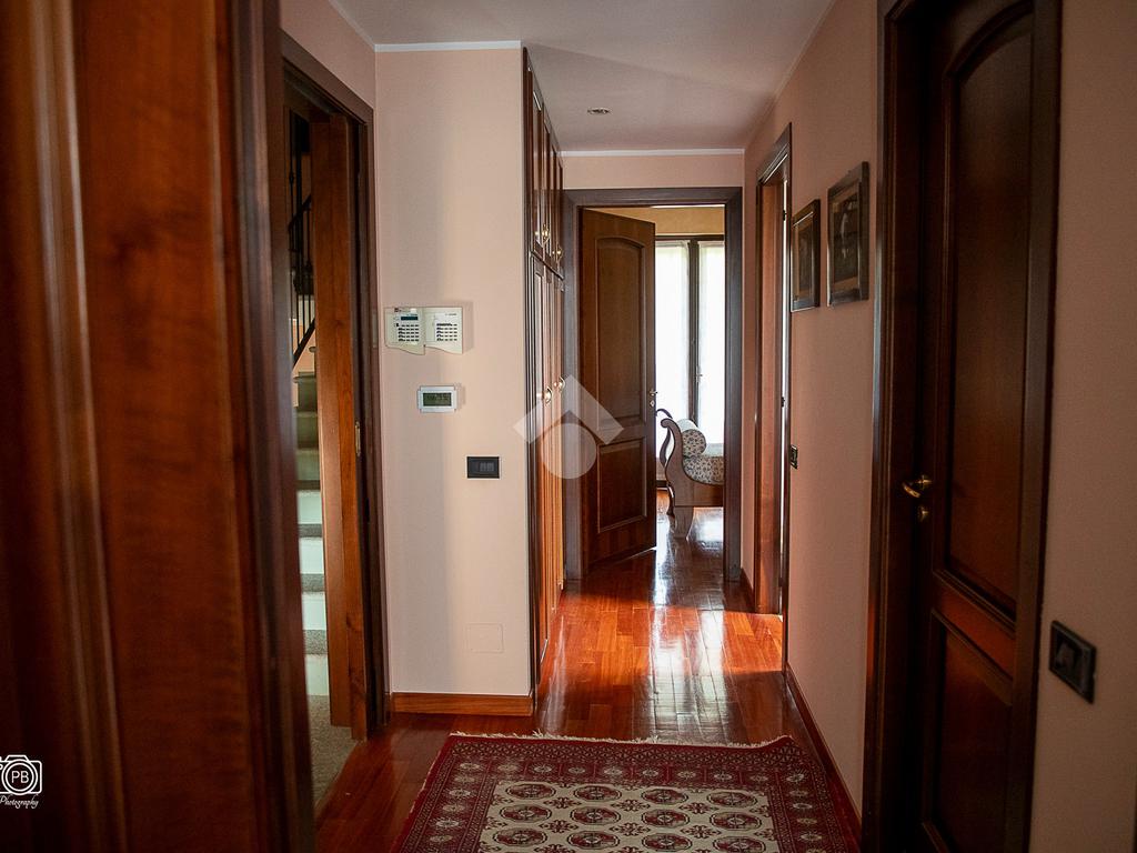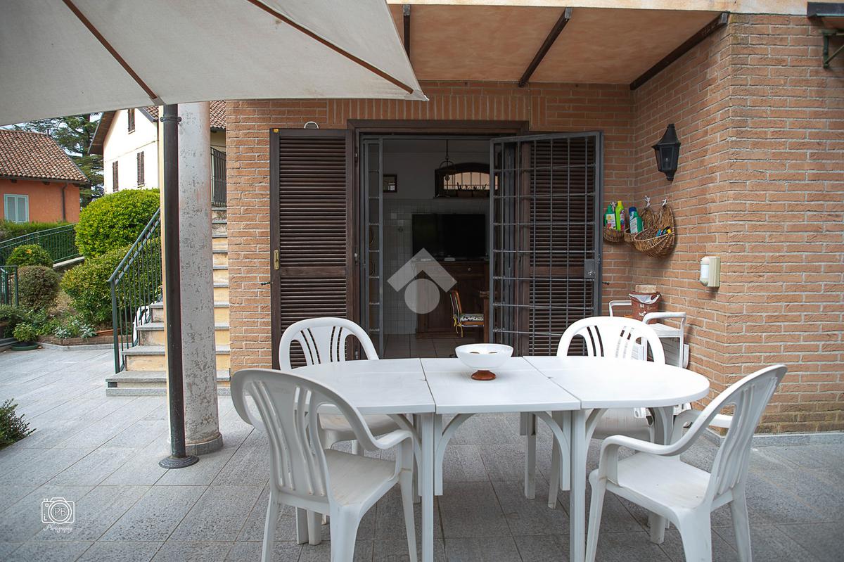 Elegante villa indipendente, realizzata nel 1996, libera su quattro lati e circondata da un terreno esclusivo di circa 1.400 mq, suddiviso tra giardino pianeggiante e parco piantumato. L’ubicazione di questa soluzione è strategica : vicina al centro del paese e a tutti i principali servizi, offre allo stesso tempo un’oasi di assoluta tranquillità, immersa nel verde e con una vista panoramica mozzafiato sulle pianure e sulle Alpi circostanti. L’abitazione si sviluppa su quattro livelli e presenta una distribuzione degli spazi studiata per offrire comfort, funzionalità e massima vivibilità. Al piano terra si viene accolti da un ampio salone doppio e zona giorno comprende anche una sala da pranzo e una cucina abitabile con accesso diretto a un patio coperto, attrezzato con barbecue e zona pranzo, completano il piano un disimpegno, un elegante bagno rifinito in prezioso travertino e una spaziosa camera padronale. Tutti gli ambienti di questo livello dispongono di accesso diretto al giardino. Al primo piano si trovano un disimpegno, due bagni e due camere da letto con accesso diretto a un terrazzino che gira intorno al perimetro della casa, offrendo una vista continua sul paesaggio. Sempre su questo livello, è presente un ampio studio con bagno privato, perfetto come zona lavoro o ambiente per gli ospiti. Il secondo piano è composto da uno splendido terrazzo panoramico, di dimensioni pari alla superficie dell’abitazione,dotato di punto acqua: un ambiente unico, ideale come solarium, giardino pensile o area lounge con vista a 360°. Al piano seminterrato si sviluppa una tavernetta con camino a legna. Sono presenti inoltre un bagno, una lavanderia, locali di servizio e deposito, una cantina e un’autorimessa di circa 90 mq, collegata internamente. L’intera abitazione è circondata da un’intercapedine che garantisce isolamento e protezione strutturale, dettaglio tecnico di grande valore. All’esterno, il giardino è curato e arricchito da percorsi in pietra di Luserna. La conformazione del terreno consente la realizzazione di una piscina.