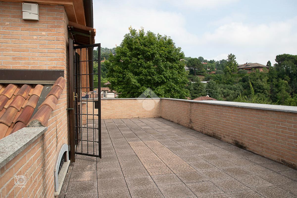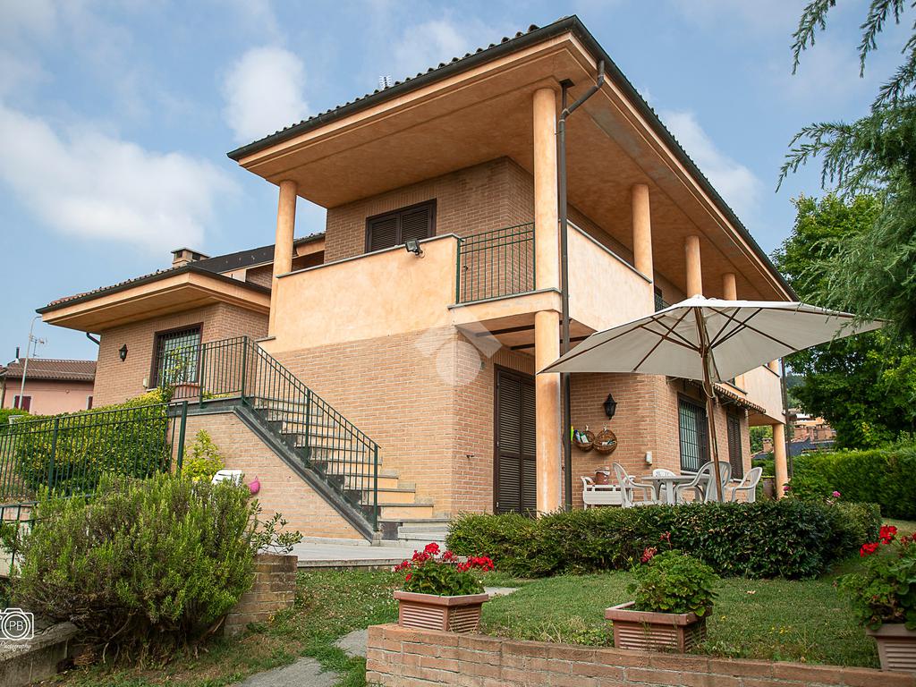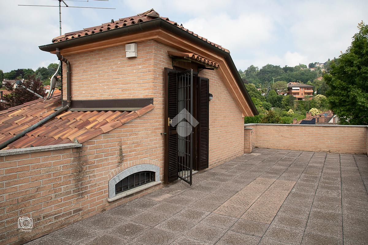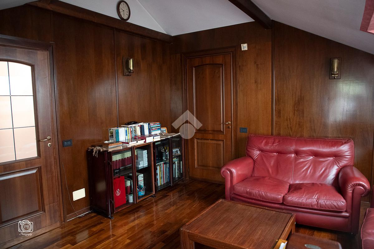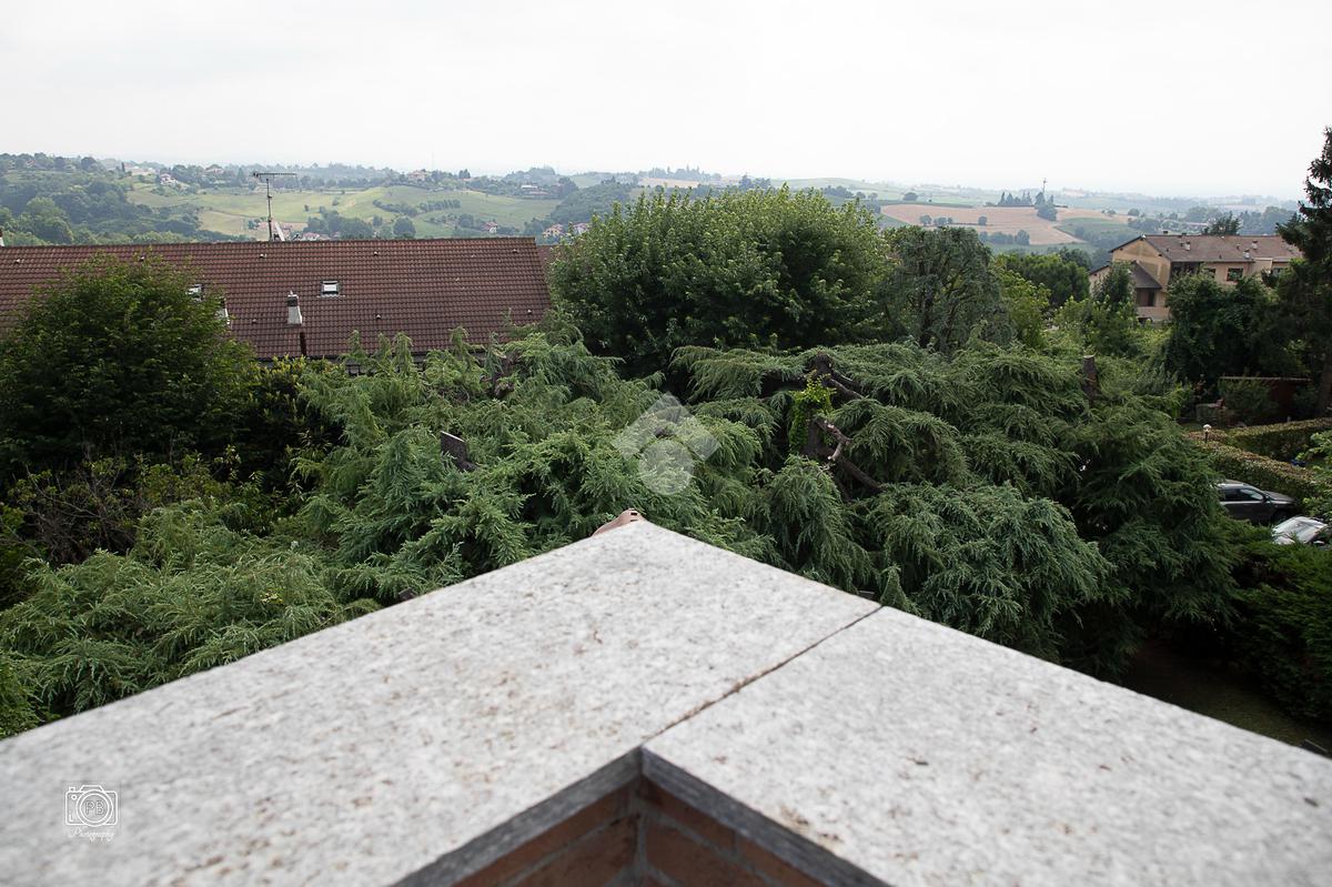 Elegante villa indipendente, realizzata nel 1996, libera su quattro lati e circondata da un terreno esclusivo di circa 1.400 mq, suddiviso tra giardino pianeggiante e parco piantumato. L’ubicazione di questa soluzione è strategica : vicina al centro del paese e a tutti i principali servizi, offre allo stesso tempo un’oasi di assoluta tranquillità, immersa nel verde e con una vista panoramica mozzafiato sulle pianure e sulle Alpi circostanti. L’abitazione si sviluppa su quattro livelli e presenta una distribuzione degli spazi studiata per offrire comfort, funzionalità e massima vivibilità. Al piano terra si viene accolti da un ampio salone doppio e zona giorno comprende anche una sala da pranzo e una cucina abitabile con accesso diretto a un patio coperto, attrezzato con barbecue e zona pranzo, completano il piano un disimpegno, un elegante bagno rifinito in prezioso travertino e una spaziosa camera padronale. Tutti gli ambienti di questo livello dispongono di accesso diretto al giardino. Al primo piano si trovano un disimpegno, due bagni e due camere da letto con accesso diretto a un terrazzino che gira intorno al perimetro della casa, offrendo una vista continua sul paesaggio. Sempre su questo livello, è presente un ampio studio con bagno privato, perfetto come zona lavoro o ambiente per gli ospiti. Il secondo piano è composto da uno splendido terrazzo panoramico, di dimensioni pari alla superficie dell’abitazione,dotato di punto acqua: un ambiente unico, ideale come solarium, giardino pensile o area lounge con vista a 360°. Al piano seminterrato si sviluppa una tavernetta con camino a legna. Sono presenti inoltre un bagno, una lavanderia, locali di servizio e deposito, una cantina e un’autorimessa di circa 90 mq, collegata internamente. L’intera abitazione è circondata da un’intercapedine che garantisce isolamento e protezione strutturale, dettaglio tecnico di grande valore. All’esterno, il giardino è curato e arricchito da percorsi in pietra di Luserna. La conformazione del terreno consente la realizzazione di una piscina.