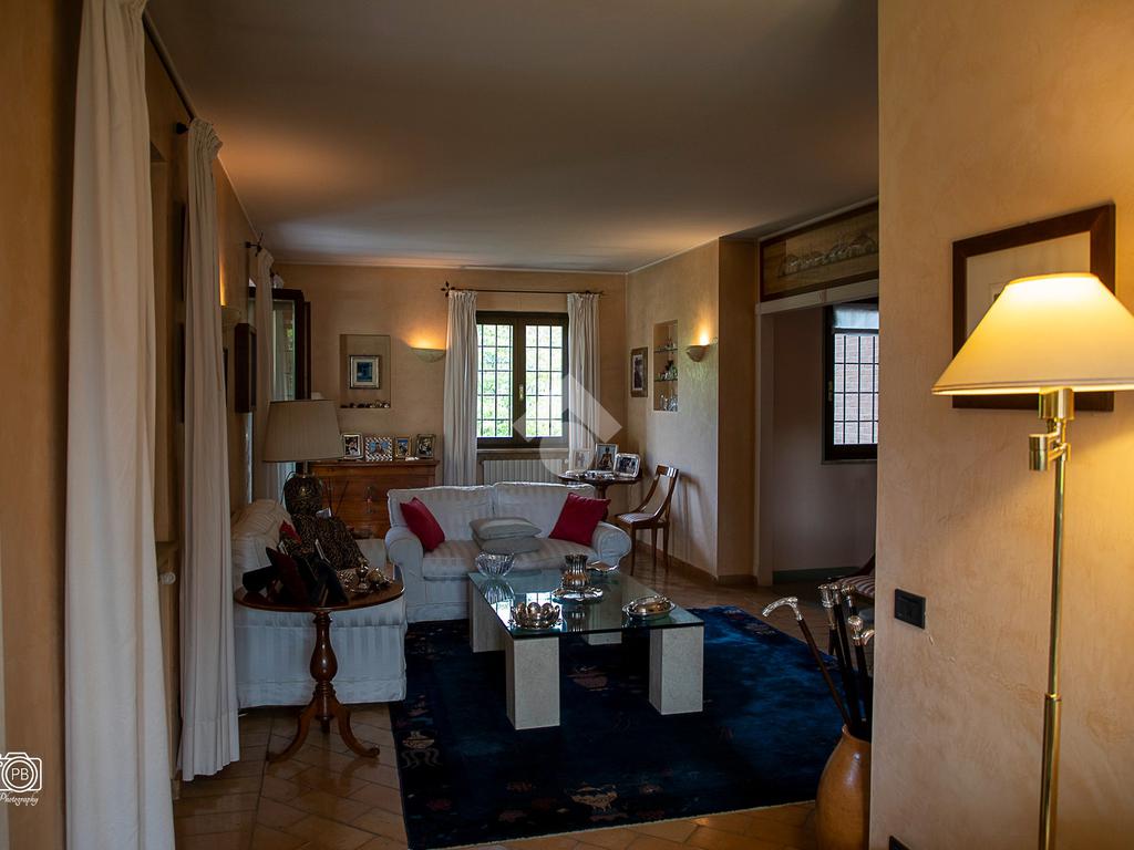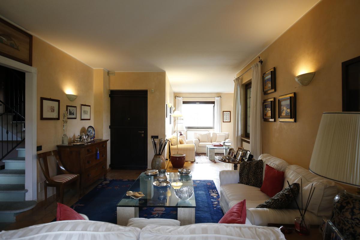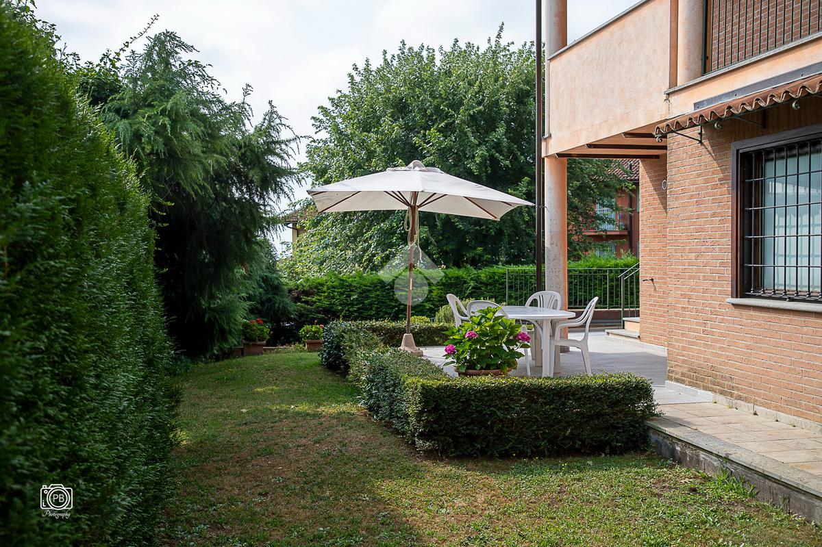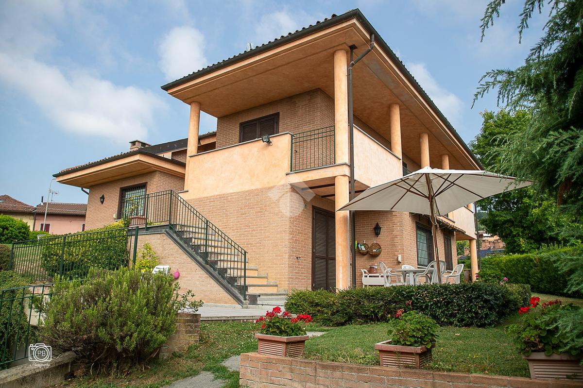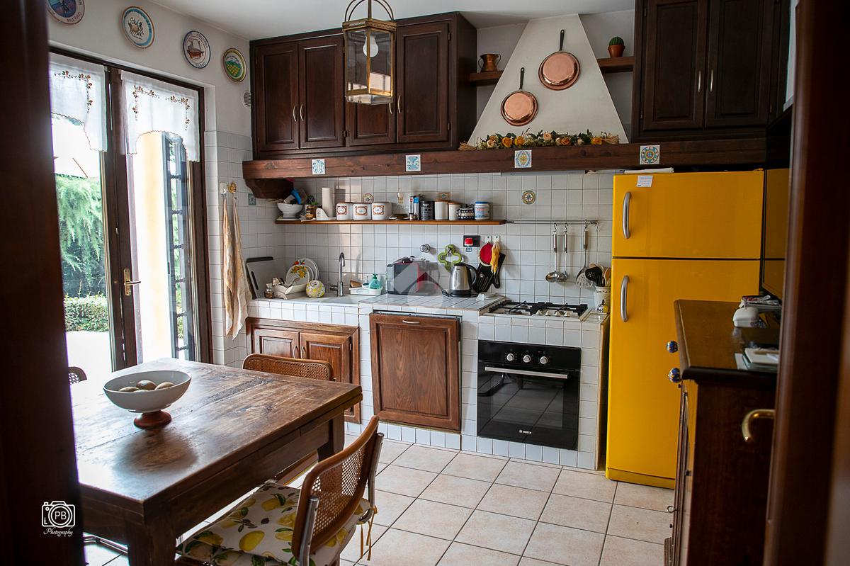 Elegante villa indipendente, realizzata nel 1996, libera su quattro lati e circondata da un terreno esclusivo di circa 1.400 mq, suddiviso tra giardino pianeggiante e parco piantumato. L’ubicazione di questa soluzione è strategica : vicina al centro del paese e a tutti i principali servizi, offre allo stesso tempo un’oasi di assoluta tranquillità, immersa nel verde e con una vista panoramica mozzafiato sulle pianure e sulle Alpi circostanti. L’abitazione si sviluppa su quattro livelli e presenta una distribuzione degli spazi studiata per offrire comfort, funzionalità e massima vivibilità. Al piano terra si viene accolti da un ampio salone doppio e zona giorno comprende anche una sala da pranzo e una cucina abitabile con accesso diretto a un patio coperto, attrezzato con barbecue e zona pranzo, completano il piano un disimpegno, un elegante bagno rifinito in prezioso travertino e una spaziosa camera padronale. Tutti gli ambienti di questo livello dispongono di accesso diretto al giardino. Al primo piano si trovano un disimpegno, due bagni e due camere da letto con accesso diretto a un terrazzino che gira intorno al perimetro della casa, offrendo una vista continua sul paesaggio. Sempre su questo livello, è presente un ampio studio con bagno privato, perfetto come zona lavoro o ambiente per gli ospiti. Il secondo piano è composto da uno splendido terrazzo panoramico, di dimensioni pari alla superficie dell’abitazione,dotato di punto acqua: un ambiente unico, ideale come solarium, giardino pensile o area lounge con vista a 360°. Al piano seminterrato si sviluppa una tavernetta con camino a legna. Sono presenti inoltre un bagno, una lavanderia, locali di servizio e deposito, una cantina e un’autorimessa di circa 90 mq, collegata internamente. L’intera abitazione è circondata da un’intercapedine che garantisce isolamento e protezione strutturale, dettaglio tecnico di grande valore. All’esterno, il giardino è curato e arricchito da percorsi in pietra di Luserna. La conformazione del terreno consente la realizzazione di una piscina.